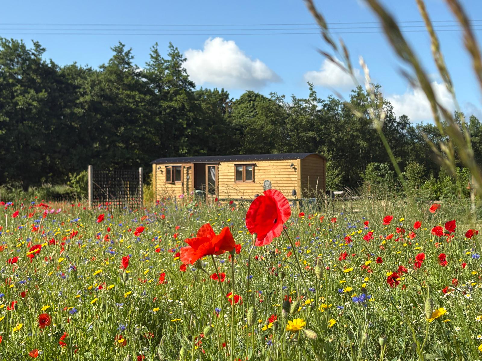 Th huts are set within our very own private meadow which has been planted with wildflowers and thousands of poppies spring to life in early April. The meadow includes cut paths for our guests to meander through at their leisure.